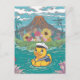 AI generated art of a cute rubber duck at sea in front of a tropical volcano