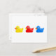 Cute cartoon illustration of three different coloured ducks floating together in a row. Image available on various gifts and products.