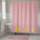 This playful shower curtain features three adorable rubber ducks as they navigate a sea of white polka dots on a pink background. A blend of style and whimsy that transforms your bathroom into a cheerful oasis.