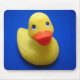 A yellow rubber ducky on a royal blue background
