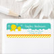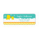 This cute and fun address label features an adorable yellow duck and duckling in white soapy bath bubbles on a bright green background with an orange ribbon and yellow stripes. The text combines handwritten script and sans serif fonts for a stylish and modern look. This is perfect for a Baby Shower.
