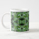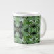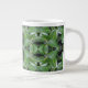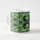 Go green with the rubber tree pattern on this large Mug. This tropically lush artwork was made from an original closeup photograph by HomeWare of the leaves of a rubber tree. The leaves are smooth and shiny, in natural shades of green, from a lighter, yellow green in the sunlight to a deeper green in the shadows. The leaves are plump looking and their light yellow green stems add a linear pattern to the photo design.