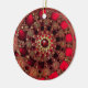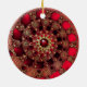 A sparkling fractal design with ornate spirals of dark and vivid red, overlaid with gold filigree like metallic seashells and studded with glittering rubies.