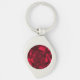 Swirl silver colored metal keychain with an image of a dazzling deep red ruby. See matching large round premium keychain, round double-sided acrylic keychain, button, charm, drop earrings, stud earrings, necklace and wrist watch. See the entire Gemstones & Medallions Keychain collection in the ACCESSORIES section.