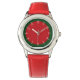 Decorate your wrist in style with this watch with a dual-tone red and green face and white numbers.