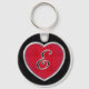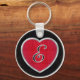 This keychain features a crushed ruby in silver inlaid heart with a monogrammed initial.