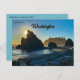 This postcard features a view of Ruby Beach, Washington, USA . Photo credit: Accashia Thomas, 2020.