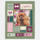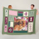 Large Fleece blanket with Ruby cavalier king charles spaniel art design. Quilted Look design. Green and Pink colors. Dog art.