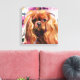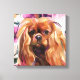 Vintage style floral 'Ruby' cavalier dog art print in soft sweet coloring. 12 x 12 inch
