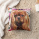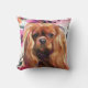 Vintage style floral dog art pillow with 'Ruby' cavalier king charles spaniel design in soft colors.