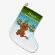 Perfect! Exactly what I ordered! I uploaded a picture of my blue chow, and the screen print was incredible. the back side of the stocking was the red and black checkered print. my puppy's name was also printed on the cuff of the stocking. PERFECT! Highly recommend this product! My puppy's name was screen printed onto the cuff of the stocking, the font was perfect!
