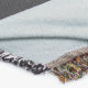 A quality printed throw has its advantages. This is a much finer weave throw than its loopier cousins, and though lighter, it is worth the investment for custom room accessorizing. The back is much prettier than the typical brown, and the fringe on the long sides very vivid, the selvage nicely done. Before photographing, I washed the throw in cold water, delicate, with a thicker woven throw the same size. On tumble dry low, this throw was dry in half the time as the other. This is a very practical quality if you use throws for furniture covers or to wrap up in frequently. The sleekness of the fabric makes it a great layer for accenting or protecting without the feeling of sitting on too much stuff. Perfect for napping or when you feel a light chill coming on. The color printing is beautiful and on this fabric, matched the design and color of my Photoshop image. This is an advantage for blending room fabrics and colors. The fringe on the short sides prints the colors from the design image and therefore varies from the side fringe. I streaked a white fractal line through the plaid pattern to give the illusion of weaving. This printed as crisp as an illusory thread, and put some white in the short side fringe, showing another advantage of print vs loomed- for artistic purposes, line lines, detail, and color integrity can be planned and preserved. My loomed throws have color limitations and more of a needlepoint texture. Print throws reproduce an exact image. The throw felt a little stiff straight out of the package, but this went away in the first delicate wash. Of course I searched the wash water for ink or bleeding and there was none.