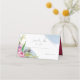This stylish boho wedding place card features a watercolor peony bouquet a white background. Corner framed with watercolor wash in a dusty blue. Modern calligraphy font and clear areas for the names and table numbers.