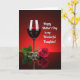 Designed with a rich crimson and fuchsia color palette, this still-life scene sits against a deep red background that fades from brighter tones to softer, muted shades. On the left, a tall-stemmed glass holds a generous pour of ruby-colored liquid, and warm light catches its smooth curves with gentle gleams that feel like a quiet toast ❤️. To the right, a single deep-pink rose rests gracefully, its layered petals opening with the kind of tenderness you might share with someone close. Both the glass and the flower sit on a dark, highly polished surface that mirrors them clearly, adding calm balance and a touch of romance. Light and shadow move across the rose’s velvety texture and the glass’s clear edges, creating a cozy, intimate mood. On the right side, a prominent white decorative cursive message reads, “Happy Mother’s Day to my Wonderful Daughter!”, standing out sharply against the red background. A small highlight glints along the rim of the glass while the rose’s petals show subtle gradients from fuchsia to softer pink 🌼.