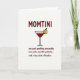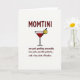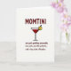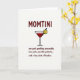 This card features a simple cocktail glass with a bowl of deep ruby-red drink, topped with a bright yellow citrus wedge and a small scarlet cherry-like dot that feels like a flirty wink ❤️. Near the top, “MOMTINI” sits centered in rounded, sans-serif letters in a warm maroon tone, standing out clearly against the off-white background. The glass is drawn with fine, minimal lines, and the slender stem leaves airy space for the message below. Under the stem, a short “recipe” is written in slanted lettering in the same deep red, reading “one part sparkling personality / two parts zen-like patients, / and a tiny dash of badass.” The stacked lines feel like a toast shared between close friends, with the cheeky wording adding a knowing grin to the scene 🌼. The restrained palette keeps the focus on the reds and yellow, making the drink look rich and the garnish feel sunny. Everything sits on a soft off-white field with plenty of open space around the centered glass and text. The citrus wedge angles slightly upward on the rim while the tiny red sphere rests inside the drink.