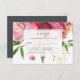 Elegant and modern ruby pink peony floral wedding rsvp card with painted watercolor flowers in pink and peach and lush green foliage, The back of the card is a chic off-black. Simply add your wedding details. If you need any help or matching products, please contact us through our store. We're happy to help you make your wedding the most beautiful day!