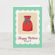Designed with a cozy, gift-giving scene, the card centers on a ruby-red drawstring pouch that feels like it’s waiting to be placed in someone’s caring hands ❤️. A bright turquoise ribbon cinches the neck and forms a neat bow, with small tassels that add a gentle, affectionate touch. The pouch sits inside a creamy beige rectangle with softly rounded corners, giving the main image a calm, framed focus. Around that panel, a wavy white border loops like a decorative stamp edge, adding a sweet, keepsake-like look. The background is a muted teal, and the cool tone plays nicely against the warm red so the gift stands out without feeling harsh. Beneath the framed illustration, the words “Happy Mother’s Day!!” appear centered, set in a dark teal tone that ties back to the background, with the exclamation marks adding a little extra cheer 🌼. The bow’s ribbon tails angle downward, ending in tiny tassels that sit just above the text line.