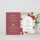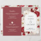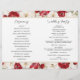 An elegant wedding program featuring ruby-red roses and soft white florals.