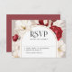 this RSVP card features ruby-red roses and soft white florals in a refined layout.