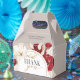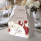 A beautifully designed favor box featuring ruby-red roses and soft white florals,