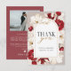 A heartfelt thank you card featuring your photo alongside ruby-red roses and soft white florals,
