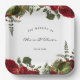Ruby Red Botanical Peonies Wedding Paper Plates