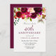 Ruby Red Burgundy Floral 40th Wedding Anniversary Invitation