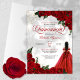 Ruby Red Floral Rose & Gold Elegant Quinceañera Invitation