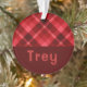 A monogrammed circle shaped acrylic Christmas tree ornament featuring a beautiful diagonal plaid pattern design in ruby red. Create the perfect customized gift by clicking the “personalized” button to add a name or custom message in the provided template field. Select the “Edit using Design Tool” link to change the font, text size and more.