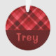 Ruby Red Plaid Monogram Circle Acrylic Ornament