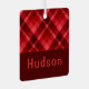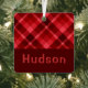 Ruby Red Plaid Monogram Square Metal Ornament