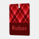 A monogrammed square metal Christmas tree ornament featuring a beautiful diagonal plaid pattern design in ruby red. Create the perfect customized gift by clicking the “personalized” button to add a name or custom message in the provided template field. Select the “Edit using Design Tool” link to change the font, text size and more.