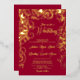 Elegant ruby red and real gold foil abstract floral wedding invitation. All wording can be personalized and the ruby red background color can be changed to another color.
