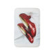 This rug is just as pictured! Vibrant Red and very soft material, nice to step in out of the tub! Matches my set of accessories and shower curtain! A must have to add some whimsy to your bathroom! Very nice, vibrant and clear print! Beautiful!