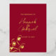 Add an elegant touch to your wedding invites with this ruby red wedding invitation. Event details are on the back of the postcard. Real foil features a raised texture. Just change the text to fit your needs. Festive Hearts design. Use the template to personalize.