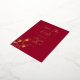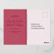 Add an elegant touch to your wedding invites with this ruby red wedding invitation postcard. Real foil on the front features a raised texture. Just customize the text to fit your needs. Festive Hearts design. Use the template to personalize.