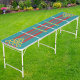 Not that I've had experience to buy that many beer pong or ping pong tables in my life, but I know a good quality product when I see it! This beer pong table is sturdy and solid and still lightweight enough to be portable. It folds and unfolds smoothly for easy storage or setup. From order to arrival here, the time was half of what was estimated, and that was during the holiday season. And -- most importantly -- the recipient LOVED it! I would definitely purchase this product again or other products by the maker Hampton Technologies , should an occasion to do so arise. The printing is beautiful! The blues and reds are deep and rich and the white "chalk look" is clean and crisp,. The photo (taken in low light) doesn't really do it justice. We know it's printed, but take a step back, and it really does look like chalk on a blackboard. To get the blue background like we did (instead of the traditional green chalkboard background), use background color #26306A. :)