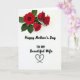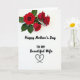 The front design shows a cluster of deep crimson roses in the upper left, their layered petals curling tightly as if gathered for someone cherished ❤️. Dark green leaves with visible veins and lightly jagged edges frame the blooms, adding a grounded, natural touch against the white background. The open space across the center keeps the focus on the message, like a quiet pause between two people who know each other well. “Happy Mother’s Day” sits near the middle in dark lettering, with “TO MY Beautiful Wife” placed just below it in a matching style, giving the words a gentle, intimate emphasis. The strong red-and-white contrast makes the flowers feel like they’re leaning in toward the text, as if offering a soft, romantic gesture. A small gray heart icon rests near the bottom, understated but steady, like a lingering glance 🌼. Faint shadows beneath the rose cluster add a slight sense of depth on the otherwise plain white field.