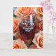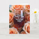 This greeting card shows a clear drinking glass centered in the scene, surrounded by layers of soft roses in blush, cream, and muted autumn tones 🌼. The background flowers fade into a gentle blur, creating a hazy halo that keeps attention on the glass and the cozy closeness of the arrangement. Inside the bowl of the glass, a deep ruby drink catches the light, and the red glow seems to echo the warmth of the petals like a quiet toast between two people ❤️. Across the front of the glass, a short dedication appears in flowing cursive-style lettering, standing out in bright white. The words sit roughly mid-glass, following the curve of the bowl so the message feels nestled into the scene rather than floating above it. Soft, diffused lighting brings out tiny highlights on the rim and stem while the rose petals look velvety and gently shaded. The final look features a bright white message centered on the glass against the rich red liquid, framed by softly blurred roses in pale pink and cream.