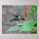 Photograph of a Ruby-throated Hummingbird sipping nectar from a native red Morning Glory flower.