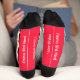 Funny Ruby Throated Hummingbird Bird socks with a pattern of adorable birdie caricatures, solid bottoms with the text, I'mma Bird Nerd and I love Birdies, both lines can be changed to your own text - a white band on top with coordinating colors and the BirdyBirdy™ Logo on top. Without a doubt, the perfect bird lovers gift for the bird watcher who has everything.. well - Almost everything..