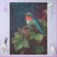 Decoupage tissue paper featuring a beautiful ruby throated hummingbird sitting near its nest.