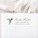Return address label featuring a Ruby-throated Hummingbird on a white background. Personalize it by adding your name and address. The font style, size and color can be changed by clicking on "customize further".