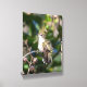 Bring the delicate beauty of nature into your home with this stunning Ruby-throated Hummingbird canvas photo tile. This high-definition photograph captures a tiny, shimmering hummingbird perched gracefully on a branch, showcasing every intricate feather and the soft, sun-drenched glow of the outdoors.