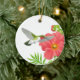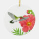 Original fine art design of a Ruby Throated Hummingbird by illustrator Carolyn McFann of Two Purring Cats Studio on a quality holiday ornament for wild bird lovers.