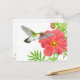 A male ruby throated hummingbird visiting a flower in this original art design by illustrator Carolyn McFann printed on quality greeting cards and postage stamps for wild bird lovers.