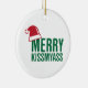 Funny and rude Christmas design with Santa hat says: Merry Kissmyass. The perfect snarky accessory for your Christmas tree.