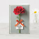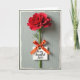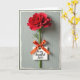 This greeting card features a single deep red flower with many ruffled petals spreading outward like a soft, romantic flourish ❤️. A sturdy green stem drops straight down, and a small cluster of green leaves sits about halfway, adding a natural touch. Behind the flower is a pale sage panel with fine vertical texture, bordered in white and set on a darker earthy green background. An orange ribbon is tied neatly around the stem, and its tidy bow feels like a small gift offered with friendly affection. Hanging from the ribbon is a bright white tag that suggests a private note shared between close hearts. The message appears on the tag in dark lettering, centered and easy to spot against the white space 🌼. Soft lighting adds gentle shadows along the petal edges and in the ribbon folds, giving the flower and bow a layered, three-dimensional look. The pale sage panel sits inside a crisp white frame, with the deeper green field surrounding it like a calm backdrop.