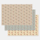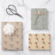 Cute wrapping paper featuring three different rufous hummingbirds on a beige, light green, and light brown background.