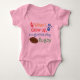 I love this onesie, it's adorable! The material is amazing so soft and the color is a perfect sky blue. When my daughter-in asked me to help with her Baby Shower, I was thrilled. It was co-ed & the theme was Cookie Monster. I had no idea that the whole world was after that big blue Monster. Thank goodness for Zazzle, I got most of the party supplies here. Then I found this onesie! They made my customization so easy. The colors are awesome. I wrote the word "Loved" across the bottom of the Cookie Monster in red letters when I was putting it together. I saw the preview & liked it. But to see it in person, OH, it was fantastic, they do exceptional work! I am so glad that I found this onesie/bodysuit. The production time and shipping were exactly what I was told, which made it easy to plan the party. Packaging was nice as well. If you are looking at this product, look no further, I highly recommend it! I'm certain that I'll be back to "design" whatever my new Grandson "needs.". The printing on the onesie/bodysuit is crisp, and clean. With perfect colors that blend well with the blue background of the basic material. We are so happy with how it came out.